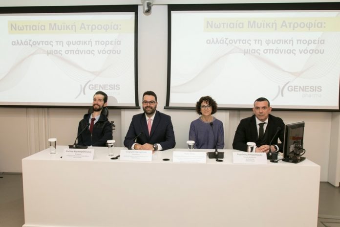 Η κα Ροζέ Πονς, Επίκουρη Καθηγήτρια Παιδιατρικής Νευρολογίας του ΕΚΠΑ, Υπεύθυνη της Ειδικής Μονάδας Παιδονευρολογίας, στην Α’ Πανεπιστημιακή Παιδιατρική Κλινική, του Νοσοκομείου Παίδων «Αγία Σοφία», αναφερόμενη αναλυτικά στη νόσο σημείωσε ότι η Νωτιαία Μυϊκή Ατροφία είναι μια κληρονομική, σπάνια νόσος που χαρακτηρίζεται από απώλεια των κινητικών νευρώνων στο νωτιαίο μυελό και το κατώτερο εγκεφαλικό στέλεχος, με αποτέλεσμα τη σοβαρή και επιδεινούμενη μυϊκή ατροφία και αδυναμία. Σχετικά με τη βαρύτητα της SMA τόνισε ότι σχετίζεται με την ποσότητα της Πρωτεΐνης Επιβίωσης του Κινητικού Νευρώνα (SMN – Survival Motor Neuron protein). Τα άτομα με SMA Τύπου 1, την πιο σοβαρή μορφή της νόσου, απαιτούν την πλέον εντατική υποστηρικτική φροντίδα, καθώς παράγουν πολύ μικρή ποσότητα πρωτεΐνης SMN και δεν έχουν την ικανότητα να παραμένουν σε καθιστή θέση χωρίς υποστήριξη ή να επιβιώνουν πέραν των δύο ετών χωρίς υποστήριξη της αναπνοής. Τα άτομα με SMA Τύπου 2 και Τύπου 3 παράγουν μεγαλύτερες ποσότητες της πρωτεΐνης SMN και εμφανίζουν λιγότερο σοβαρές μορφές της νόσου, οι οποίες όμως και πάλι προκαλούν αναπηρία και δυσχεραίνουν σημαντικά τη ζωή των ασθενών. Η συχνότητα εμφάνισης της Νωτιαίας Μυϊκής Ατροφίας, σημείωσε η κα Πονς είναι 1-2/100.000 του πληθυσμού, ενώ κάθε χρόνο εμφανίζονται 8.5-10.3 νέα περιστατικά/100.000 ζωντανές γεννήσεις. Ο τύπος 1 αντιπροσωπεύει περίπου το 50% των νέων διαγνωσμένων ασθενών αλλά η εξαιρετική σοβαρότητα του τύπου 1 έχει ως αποτέλεσμα το χαμηλό επιπολασμό. Η κα Πονς ανέφερε σχετικά με την κληρονομικότητα ότι «περίπου 1 στους 50 ανθρώπους είναι φορέας της SMA. Στην Ευρώπη υπολογίζονται περίπου 12-18 εκ. φορείς ενώ στην Ελλάδα κυμαίνονται μεταξύ 180-270 χιλιάδες».