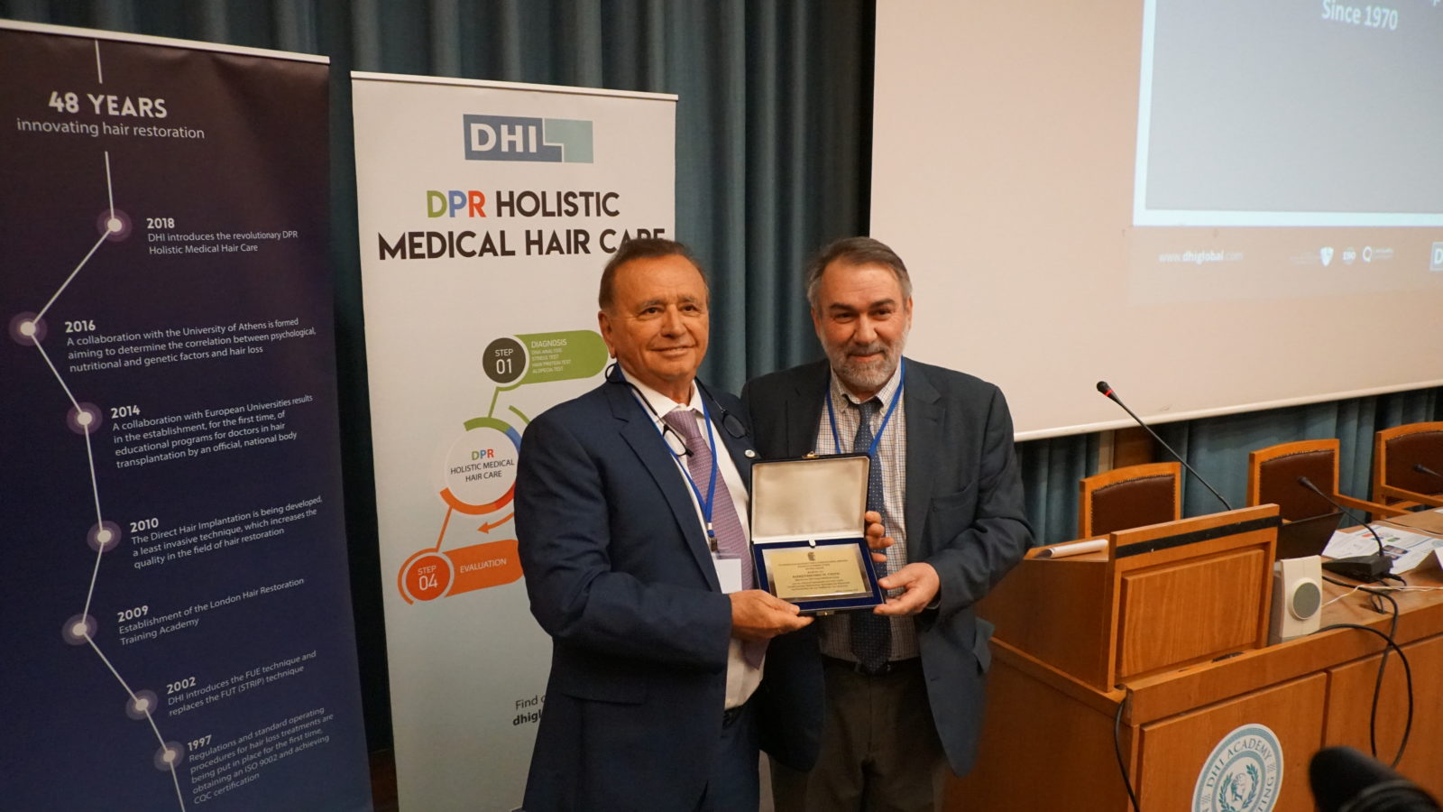 Κορυφαία στιγμή του φετινού Academy Masters Meeting αποτέλεσε η βράβευση του ιδρυτή της DHI, Κωνσταντίνου Γιώτη, από την Ιατρική Σχολή του Εθνικού και Καποδιστριακού Πανεπιστημίου Αθηνών (ΕΚΠΑ) για την πολυετή προσφορά του στον τομέα της Διάγνωσης, Πρόγνωσης, Πρόληψης και Θεραπείας της Αλωπεκίας και των παθήσεων του τριχωτού καθώς και για το νέο πρόγραμμα DPR 360.