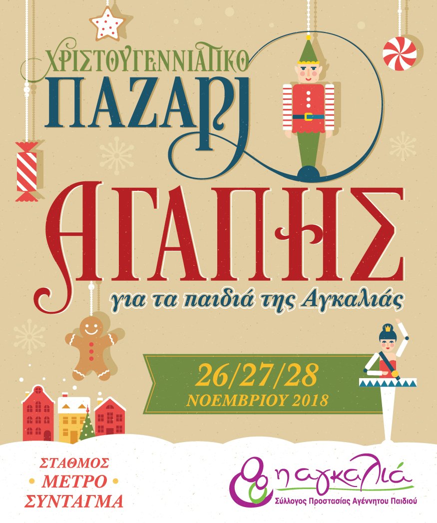 Ο Σύλλογος Προστασίας Αγέννητου Παιδιού – Η Αγκαλιά διοργανώνει Χριστουγεννιάτικη Αγορά (Παζάρι Αγάπης για τα παιδιά της Αγκαλιάς) στην αίθουσα πολλαπλών χρήσεων του ΜΕΤΡΟ, στο σταθμό «Σύνταγμα».