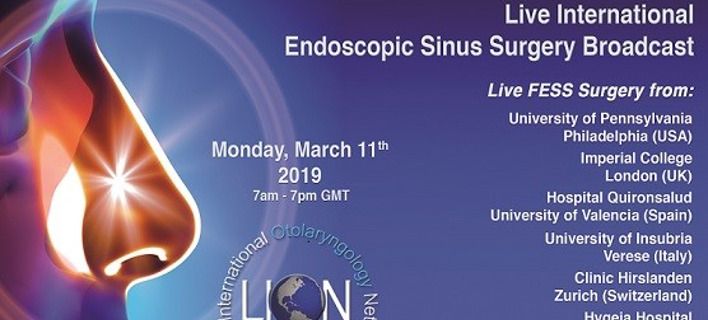 Στο 4ο Παγκόσμιο Διαδικτυακό Σεμινάριο LION-ESS (Live International Otolaryngology Network – Endoscopic Sinus and Skull Base Surgery) που πραγματοποιείται τη Δευτέρα 11 Μαρτίου 2019, συμμετέχει και φέτος το Τμήμα Ενδοσκοπικής Χειρουργικής Παραρρινίων & Βάσης Κρανίου του ΥΓΕΙΑ.