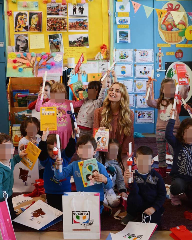 Τα παιδιά την υποδέχθηκαν με ενθουσιασμό και έδειξαν τη χαρά τους με πολλές αγκαλιές. Έπαιξαν, χόρεψαν και τραγούδησαν μαζί της ενώ χάρισε σε καθένα απ΄ αυτά μία λαμπάδα και ένα παιδικό βιβλίο (των εκδόσεων Ψυχογιός).