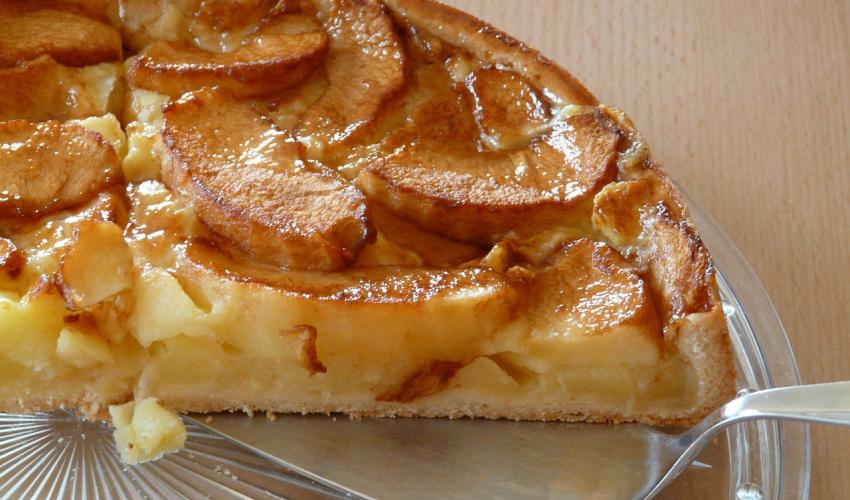 Όταν η μηλόπιτα είναι έτοιμη, την βγάζουμε από το ταψί και την βάζουμε ανάποδα ώστε να είναι τα μήλα από πάνω!