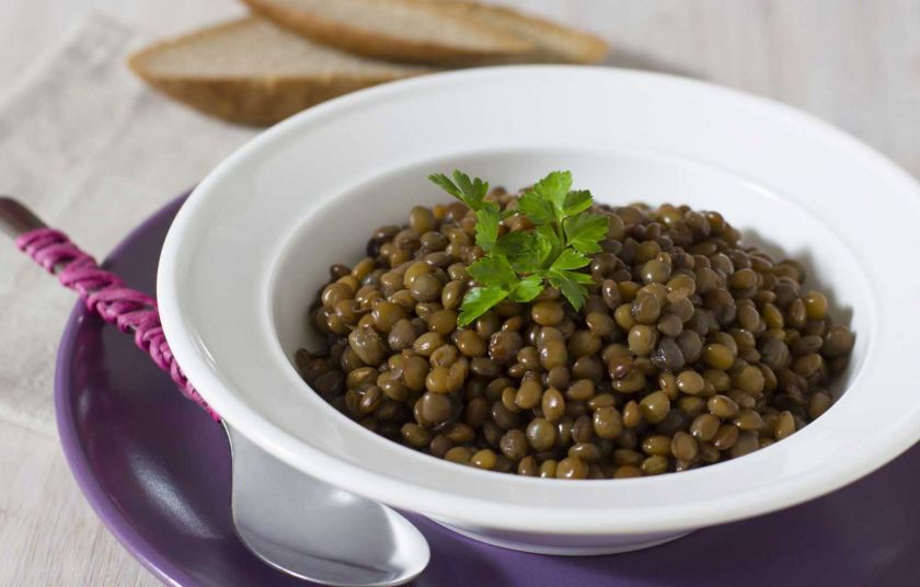 Σε μια κατσαρόλα βράζουμε τις φακές σε νερό που κοχλάζει χωρίς αλάτι, με το δαφνόφυλλο, για περίπου 25 – 30 λεπτά μέχρι να μαλακώσουν, χωρίς όμως να λιώσουν. Σουρώνουμε τις φακές και πετάμε το φύλλο δάφνης. Τις αφήνουμε στο σουρωτήρι να στραγγίξουν και να κρυώσουν.