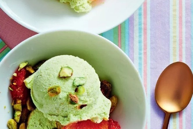 Η εκδοχή αυτή της pastry chef Leigh Omilinsky από το Nico Osteria στο Σικάγο θα σε ξαφνιάσει και είναι μια πολύ καλή επιλογή για να ξεκινήσεις τις δοκιμές. Τα φιστίκια, μάλιστα, προσθέτουν στο παγωτό σου μια πλούσια γεύση ξηρών καρπών που θα λατρέψεις. Επίσης προσθέτουν μια καλή δόση βιταμινών του συμπλέγματος Β και μετάλλων, όπως κάλιο, στο επιδόρπιό σου.