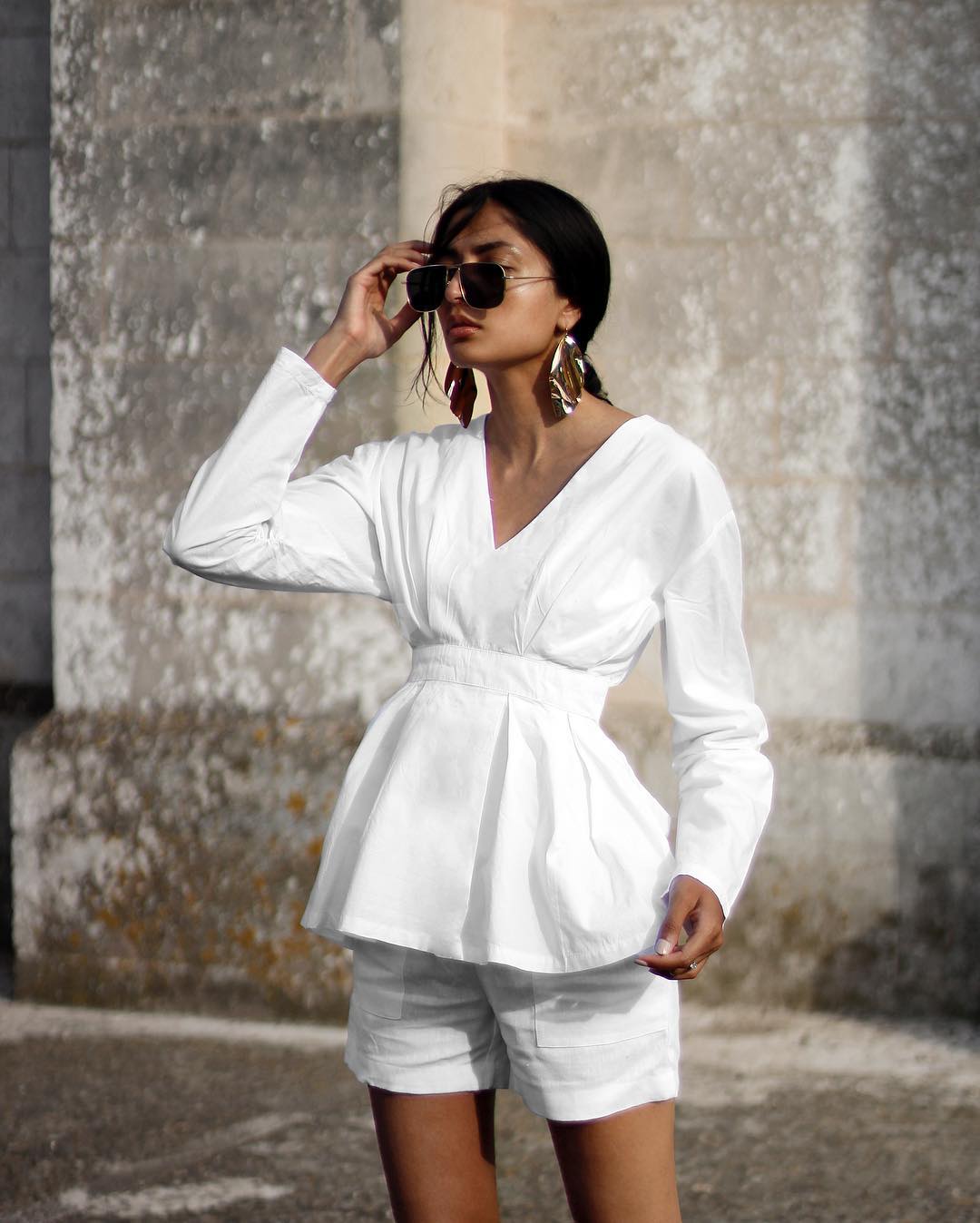 Ένα ψηλόμεσο λινό σορτς σε λευκή απόχρωση είναι ό,τι χρειάζεστε αυτή την εποχή. Συνδυάστε το με μία λευκή αέρινη πουκαμίσα και θα έχετε δημιουργήσει ένα άκρως καλοκαιρινό street style look