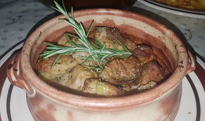 Ρίχνουμε πάνω το δεντρολίβανο, κλείνουμε τη γάστρα με το καπάκι της και την βάζουμε όπως είναι για 1-2 ώρες στο ψυγείο.