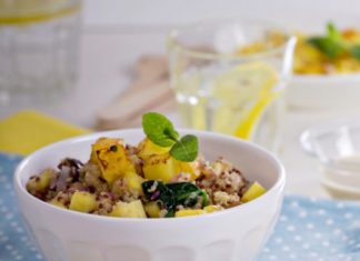 Κινόα με ανανά και χτυπημένα αυγά στο τηγάνι