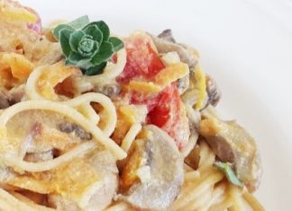 Νηστίσιμη μακαρονάδα με ταχίνι και μανιτάρια