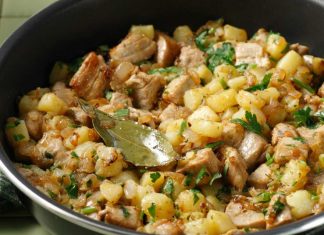 Τηγανιά με χοιρινό, πατάτες και θυμάρι